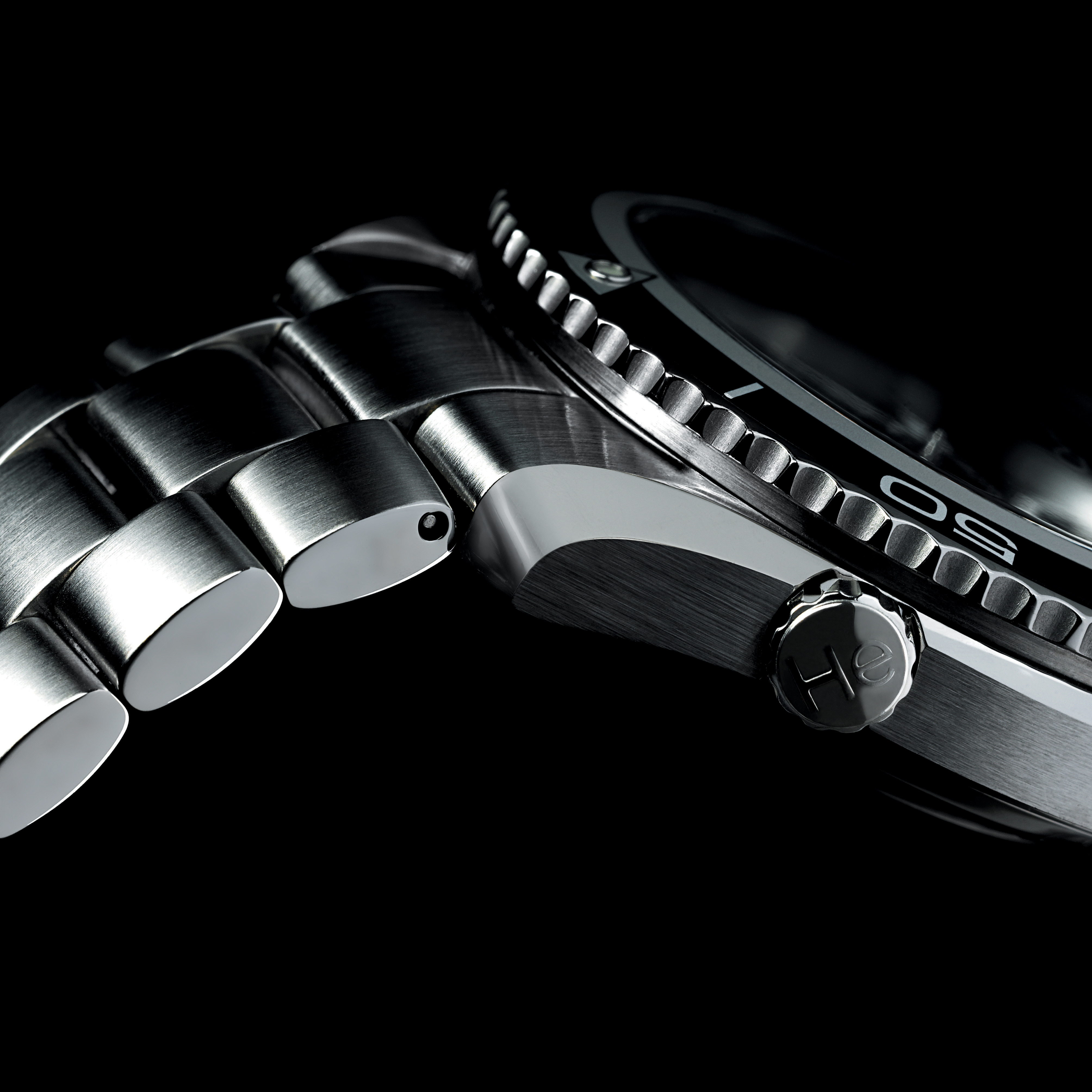 whose black chromium treatment recalls the colour of the black dial. On